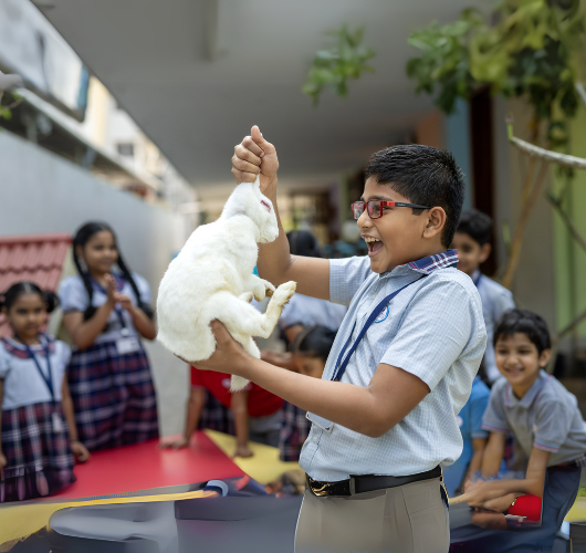 Co-curricular activities in playschool play a crucial role in enhancing creativity, social skills, and overall development. These activities go beyond academics, allowing children to explore, express, and engage in various fun-filled experiences. Drawing & Coloring Encourages imagination and hand-eye coordination. Clay Modeling & Craft Work Develops fine motor skills and creativity. Storytelling & Puppet Shows Enhances language skills and listening abilities. Music & Dance Singing & Rhymes Helps with memory, rhythm, and language development. Dance & Movement Improves coordination, flexibility, and confidence. Musical Instruments Exploration Introduces sounds, beats, and basic musical skills. Sports & Physical Activities Outdoor Free Play Running, jumping, and climbing for physical strength. Yoga & Simple Exercises Improves focus, flexibility, and body awareness.